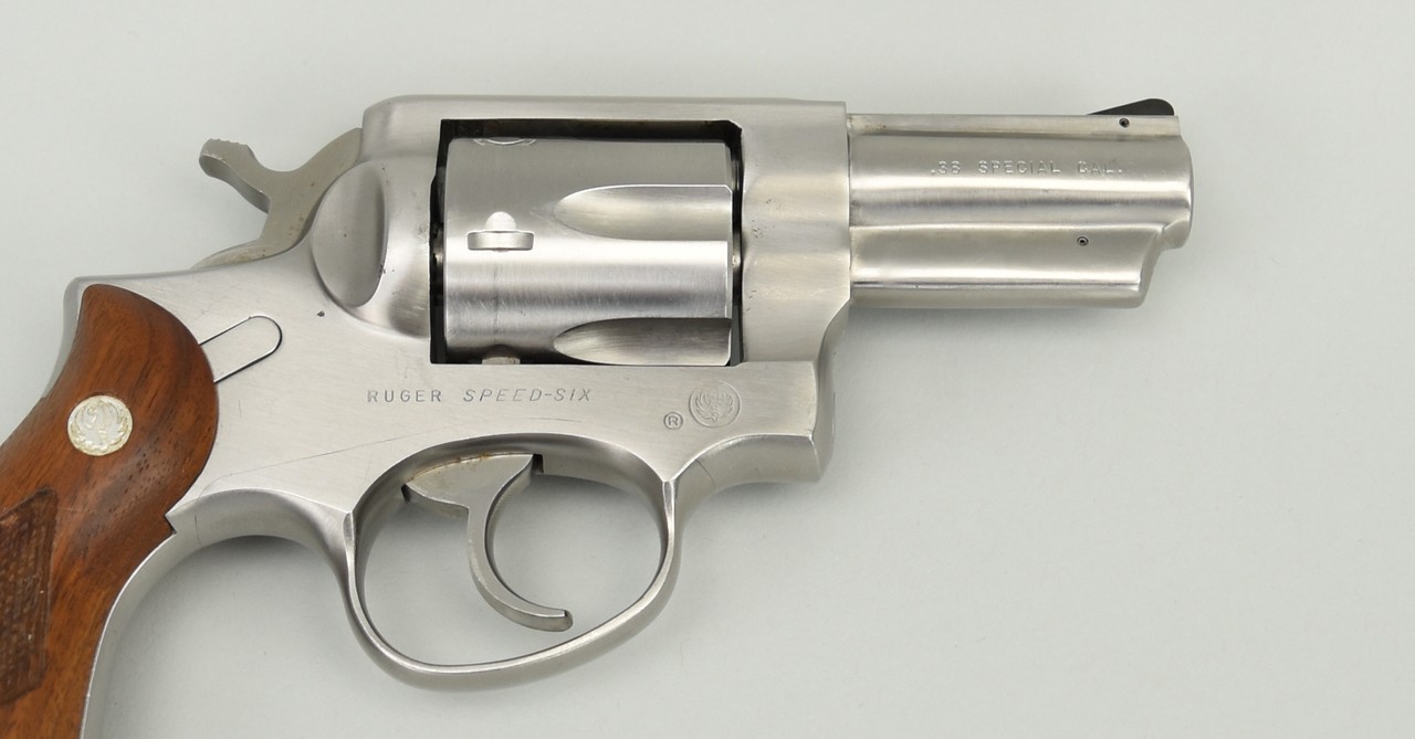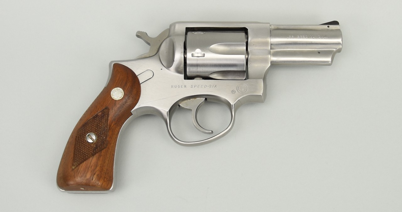 Ruger Speed-Six .38 Special caliber revolver. Scarce snubnose with stainless finish in very good condition.
