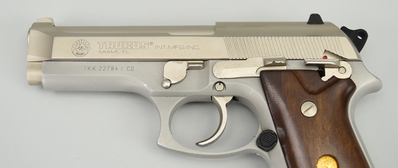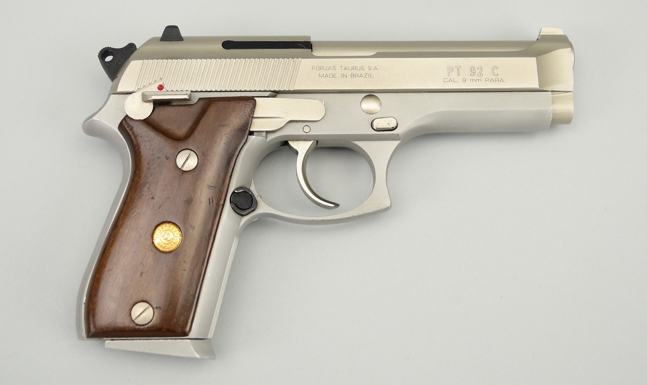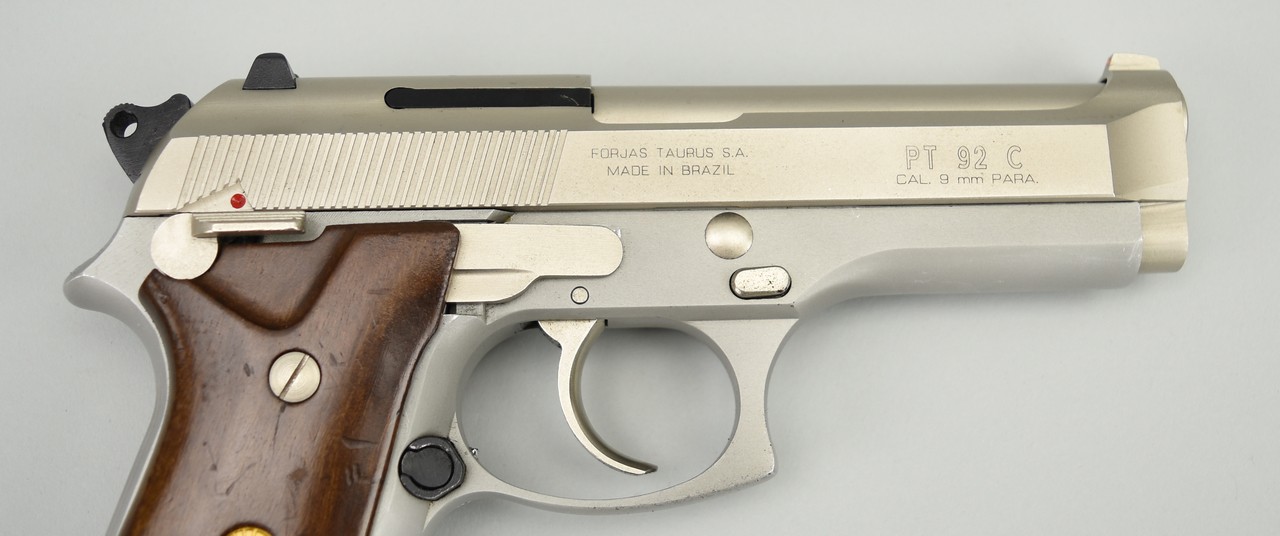 Taurus PT 92 C 9mm caliber revolver. Compact model with satin nickel finish. Excellent condition.