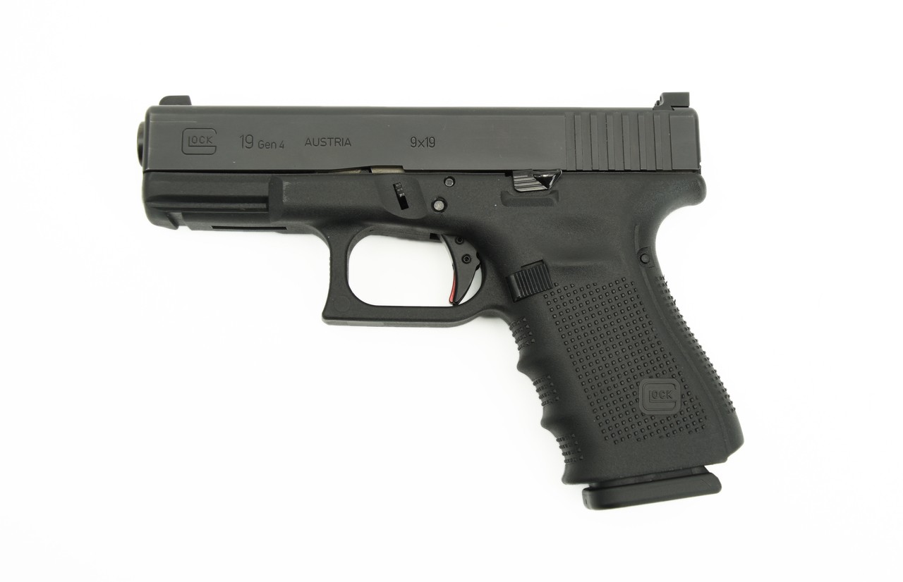 Glock 19 Generation 4 9mm caliber pistol. Compact model customized with night sights, ZEV trigger, and tungsten guide rod. A great combat carry gun in excellent condition.