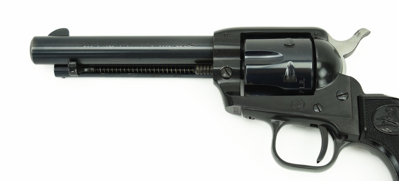 Colt Single Action Army Frontier Scout .22 LR/ .22 Magnum caliber revolver. 4 ¾” cowboy .22 with dual cylinders. Very good condition.