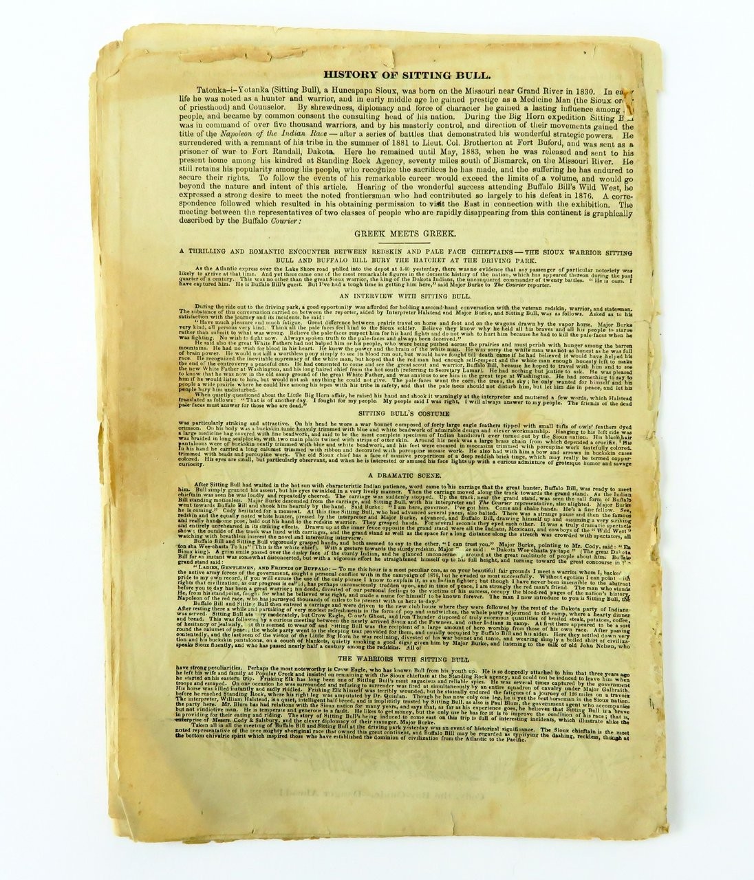 1885 Buffalo Bill Wild West Program 1st Year of Annie Oakley and sitting bull as participants. Fragile! Valuable and rare.