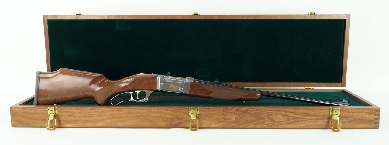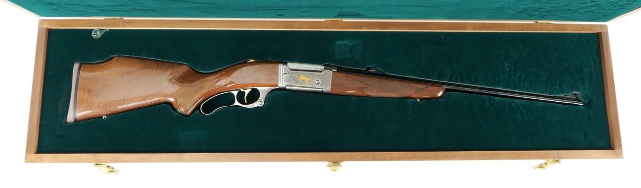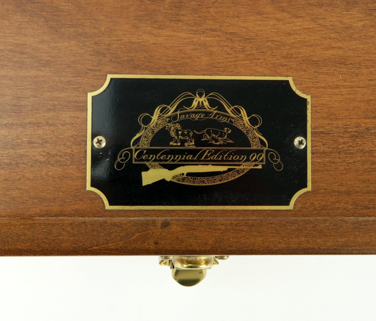 Savage Arms 99CE Centennial Edition .300 Savage caliber rifle. 1 of 100 Centennial Model. Has engraved and gold inlaid receiver with deluxe walnut. Mint condition with wooden case.