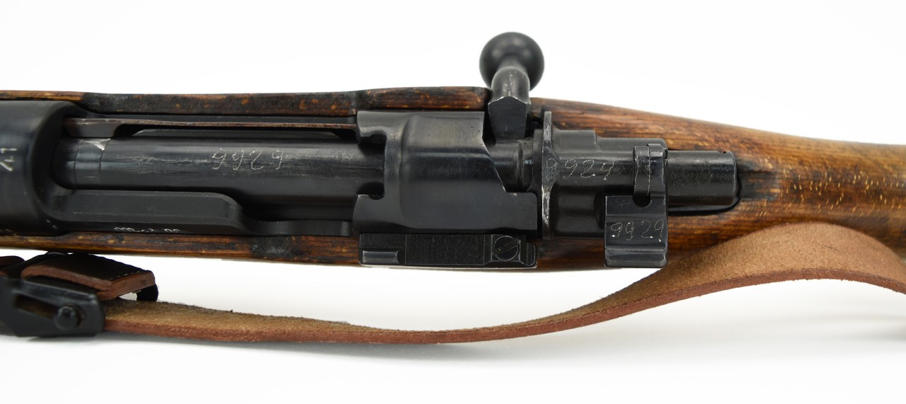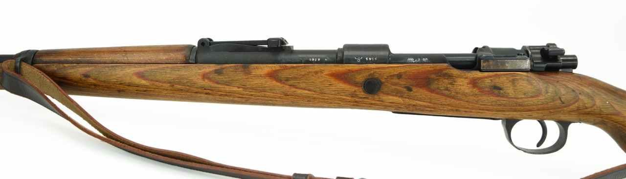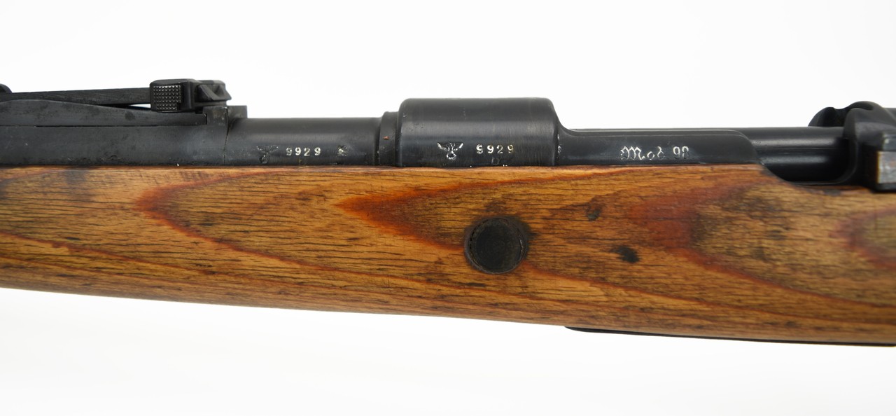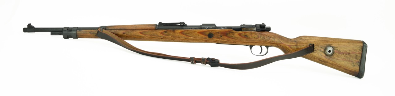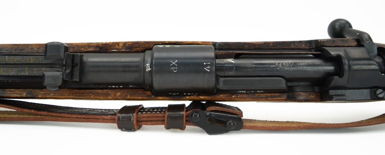 AX Erma K98 8mm caliber rifle. WWII German military rifle manufactured in 1941. Captured by the Russians and arsenal refurbished. Serial numbers are arsenal renumbered to match. Bore is very good with strong rifling. Very good overall condition.