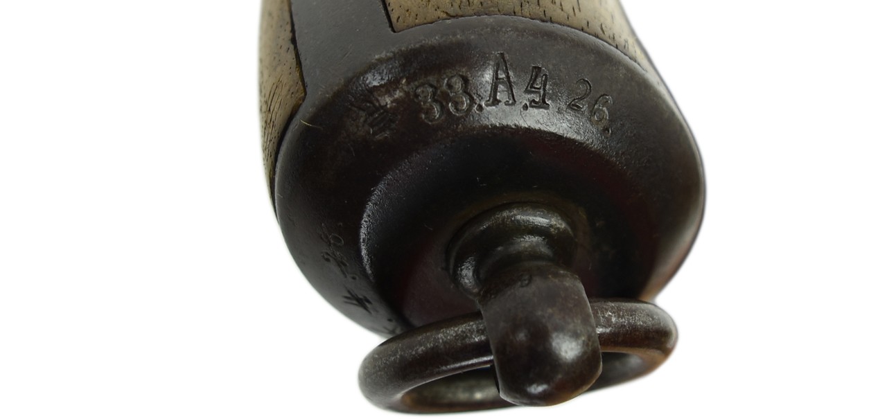 German Reich revolver by V. Charles Schilling & Co. Suhl. Regimental marking on buttcap for 33rd Artillery Regiment. Gun number 26. Action works perfectly. Bore is excellent. Grips are excellent. Gun is very good plus overall.