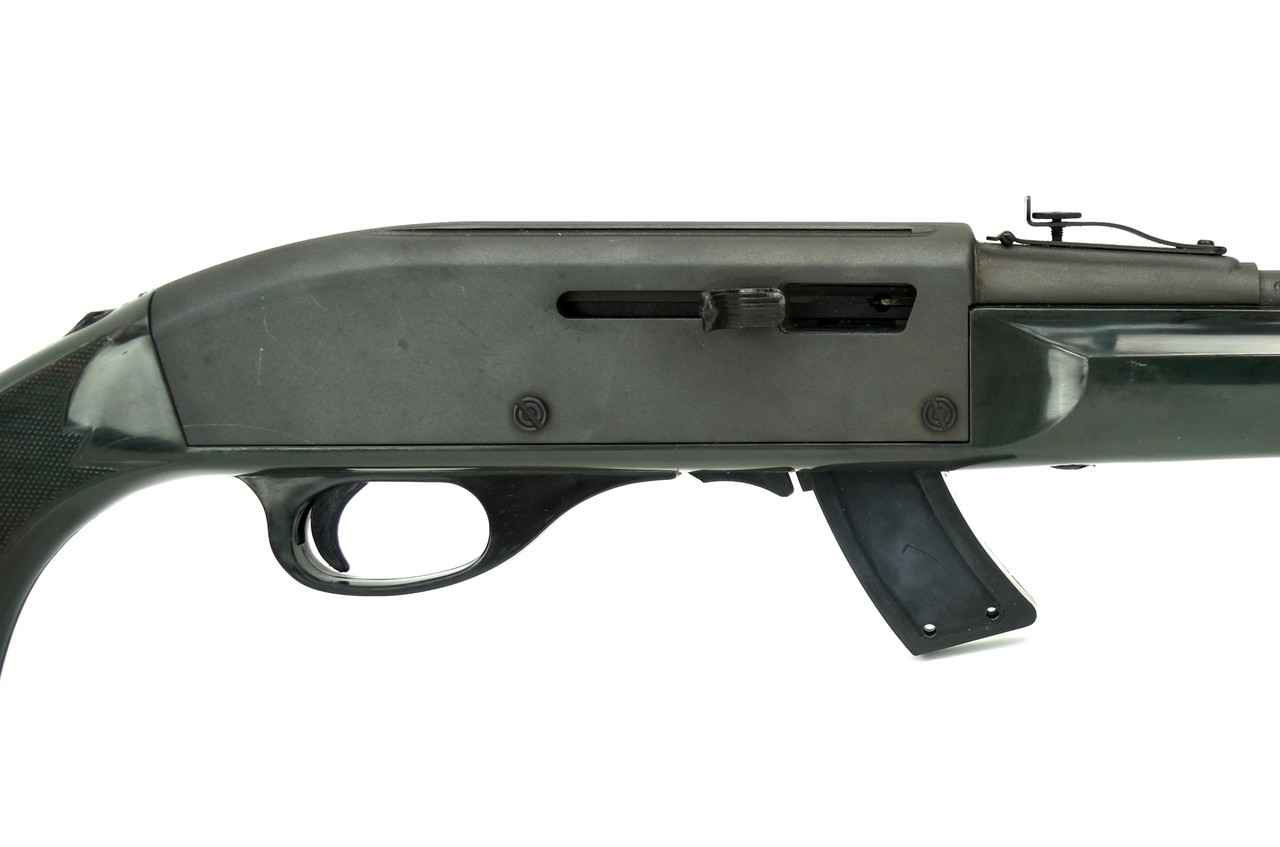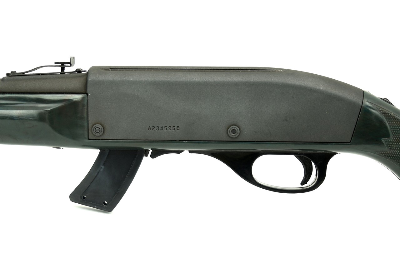 Remington Apache 77 .22 LR caliber rifle. Scarce green nylon Apache 77 with clip magazine made 1987-1989 only. Excellent condition.