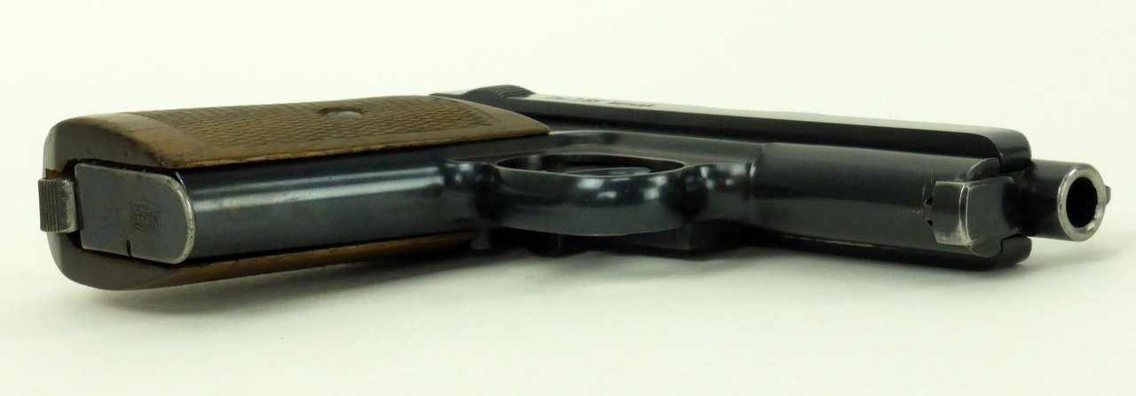 Mauser 1934 .32 ACP caliber pistol. 1941 production era. Eagle/N commercial proofing only. Matching serial numbers. Excellent bore. The grip has a minor chip at the bottom rear. Correct magazine. About 98% finish. Excellent condition.