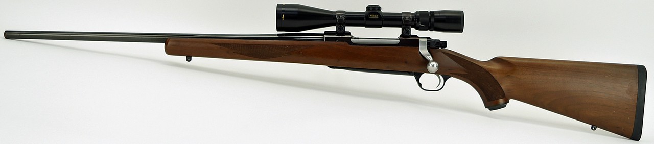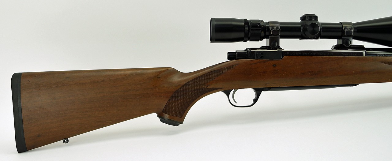 Ruger M77 MKII .270 Win caliber rifle. Left-handed bolt action deer rifle with walnut stock and Nikon 3x9 scope. The metal is excellent, the stock has a few marks.