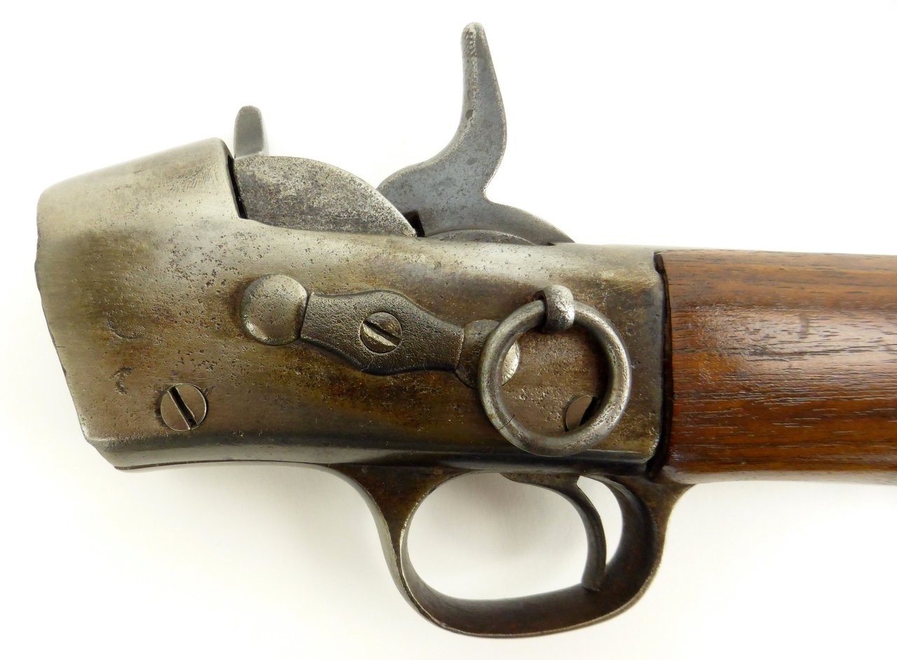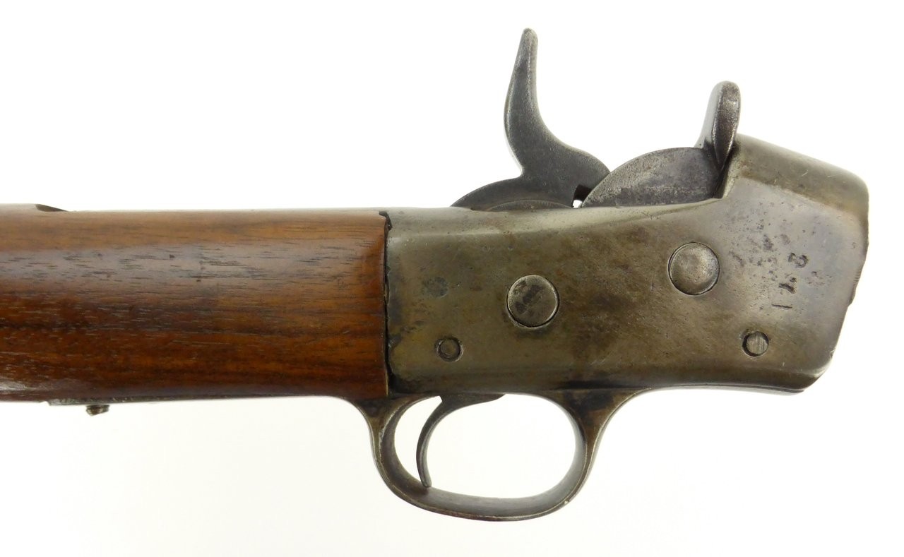 Antique Remington Rolling Block action only. No barrel or forend. Missing the extractor. It was probably a carbine because of the saddle ring. Good condition sold as is.