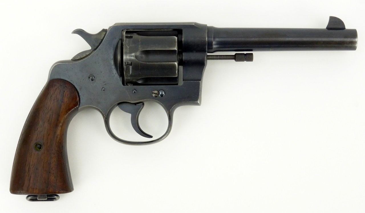 Colt 1917 Army Issue .45 ACP caliber revolver. US Army issue. Excellent bore and the action works fine. Gun has 85% original blue. Very good overall condition.
