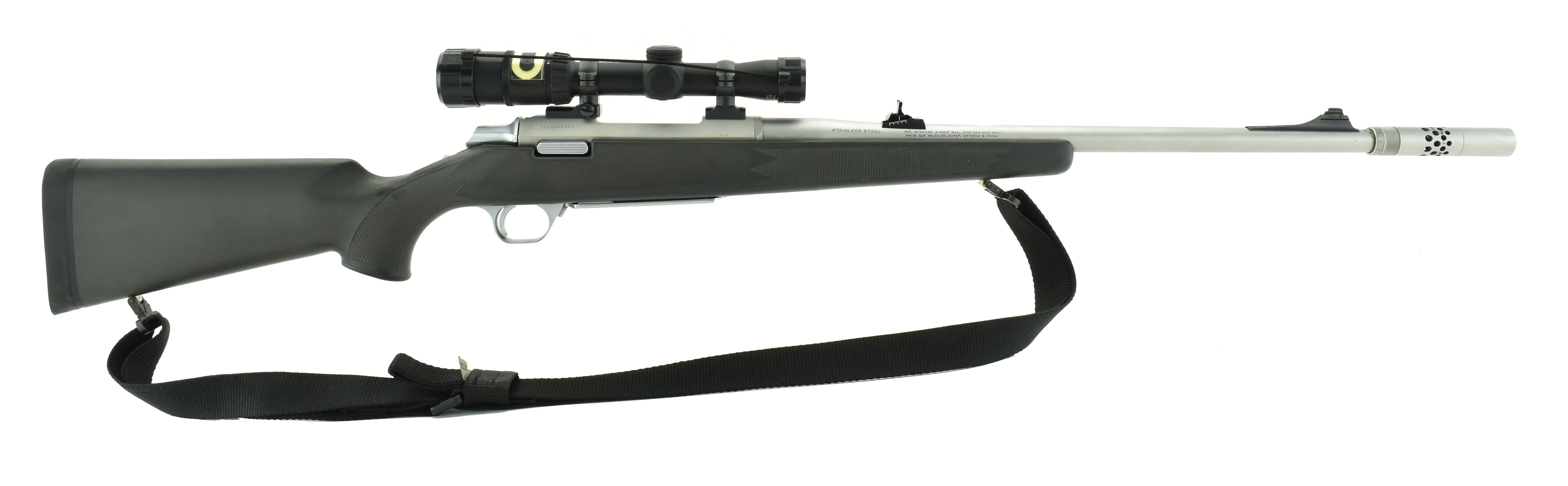 Browning “Left Handed” A-Bolt Stainless Stalker .375 H&H Mag caliber rifle. Left hand Stainless Stalker with B.O.S.S. recoil reducer has a Trijicon 1.25-4X Accupoint scope. Excellent condition.