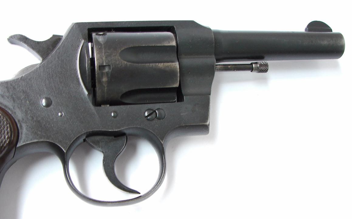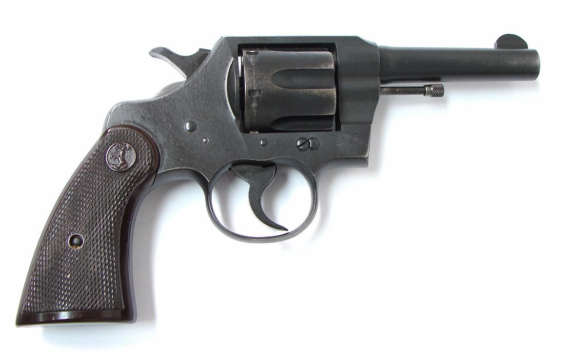 Colt Commando .38 Special caliber revolver. Manufactured 1942 thru 1943. Excellent bore. Gun has 95-97% original parkerizing with some high edge wear on the front edges of the cylinder. Barrel has a little muzzle wear. Correct Commando grips are perfect. Has the ordnance bomb on the frame. Issued to guards at Military Defense Installations in World War II.