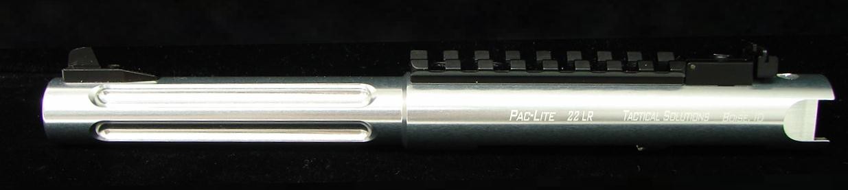 Tactical Solutions Pac-Lite .22 LR pistol light weight upper for Ruger pistols. Adjustable sights, fluted barrel, Picatinny rail, stainless finish. New.