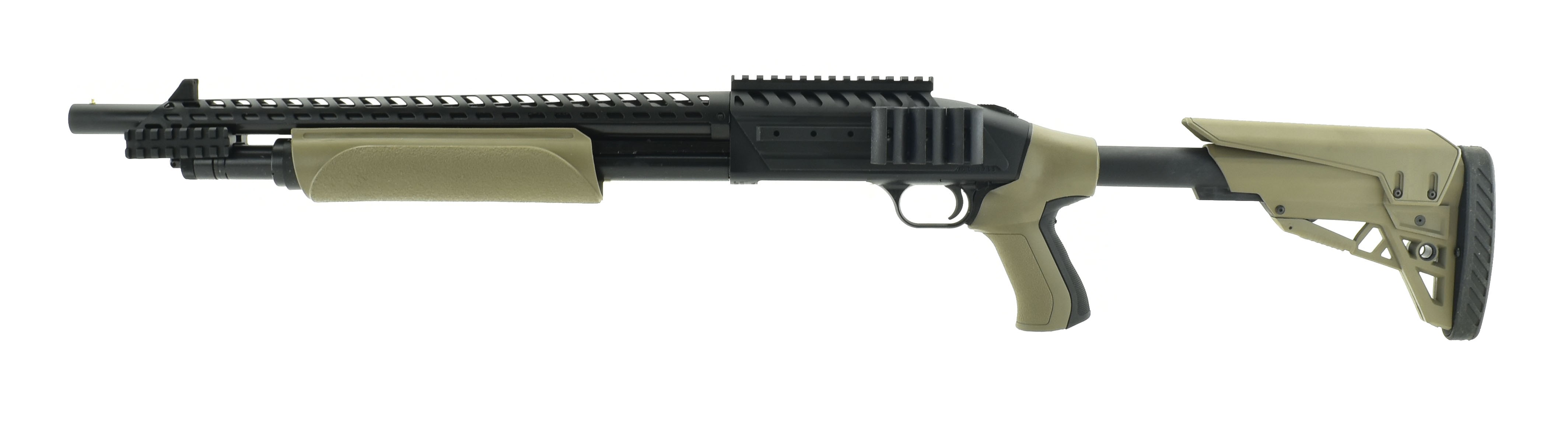 Mossberg 500 Scorpion 12 Gauge shotgun. 18½” cylinder bore barrel with heat shield, bead sight, rail, collapsible stock and 6-shot capacity. New.