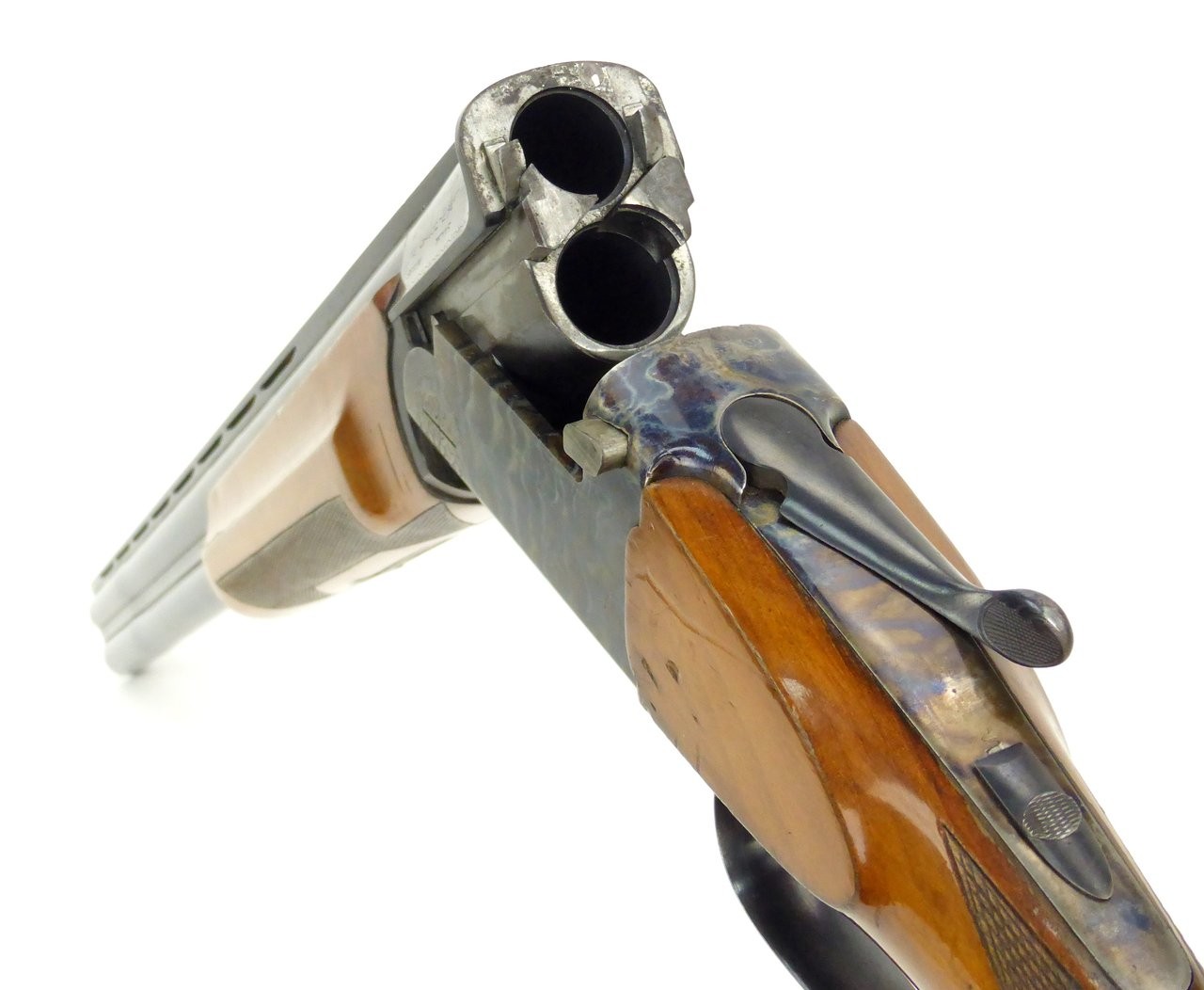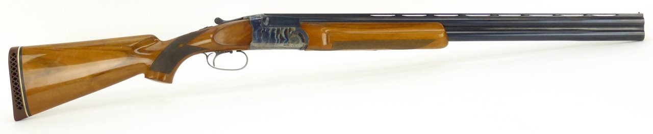 Zoli of Italy Kleinguenther 12 Gauge shotgun. Italian over/under skeet gun made for Kleinguenther of Seguin, TX. The 26” barrels have been bored out to spreader chokes. Shows use, overall very good condition.