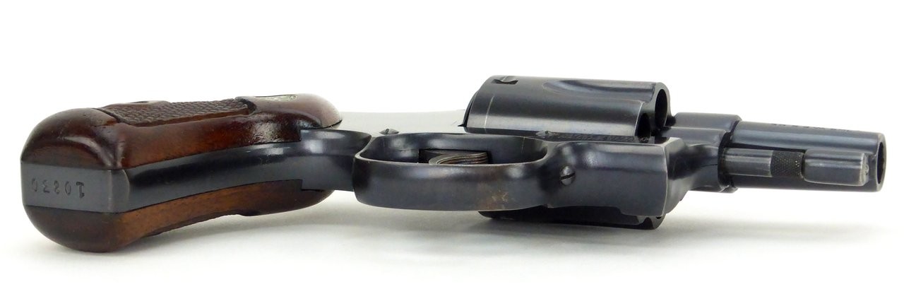Smith & Wesson Chief’s Special .38 Special caliber revolver. Very early 5-screw pre-model 36, made in 1952. Built on the modified I-frame with flat latch. Excellent condition with original red box. A great piece!