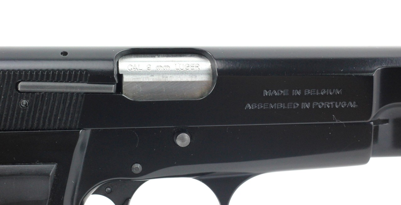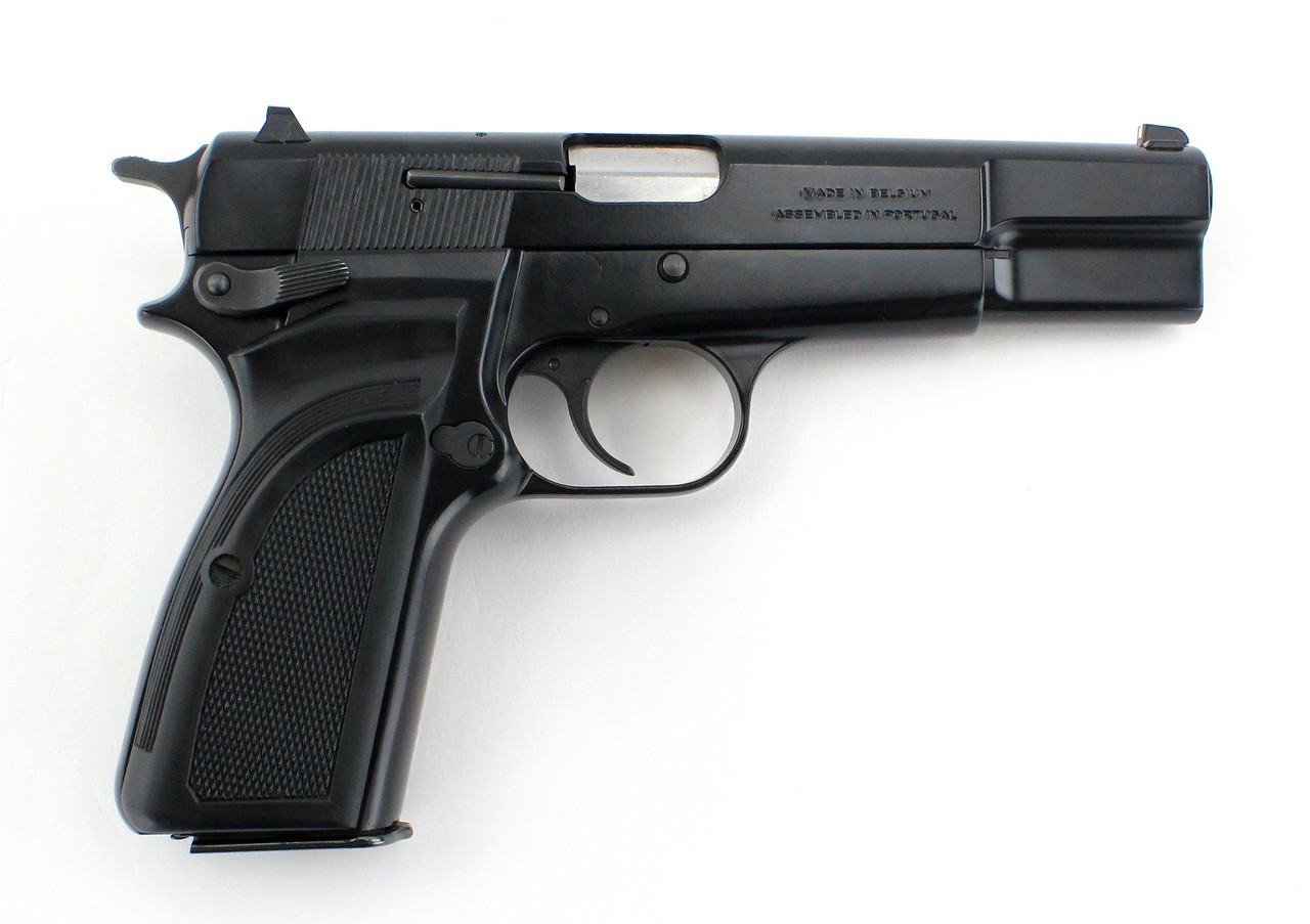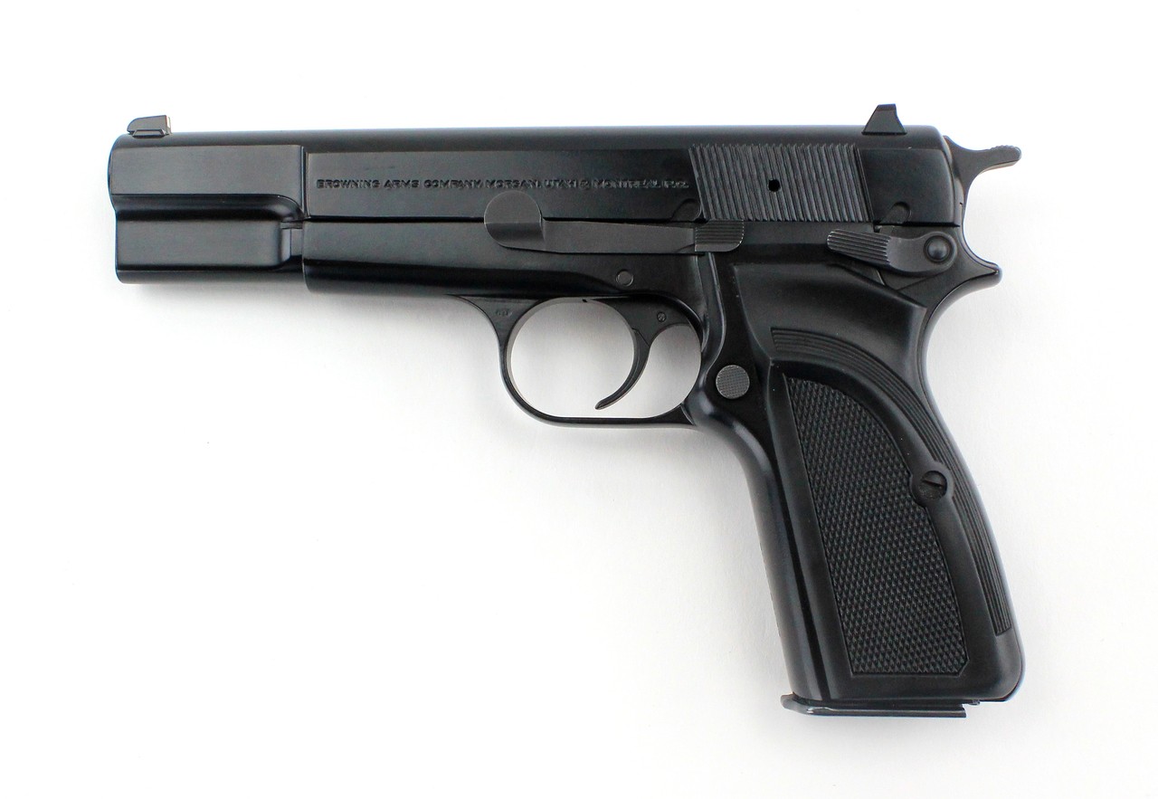 Browning Hi-Power 9mm caliber pistol. Mark III model with box and extra magazine. Excellent condition.