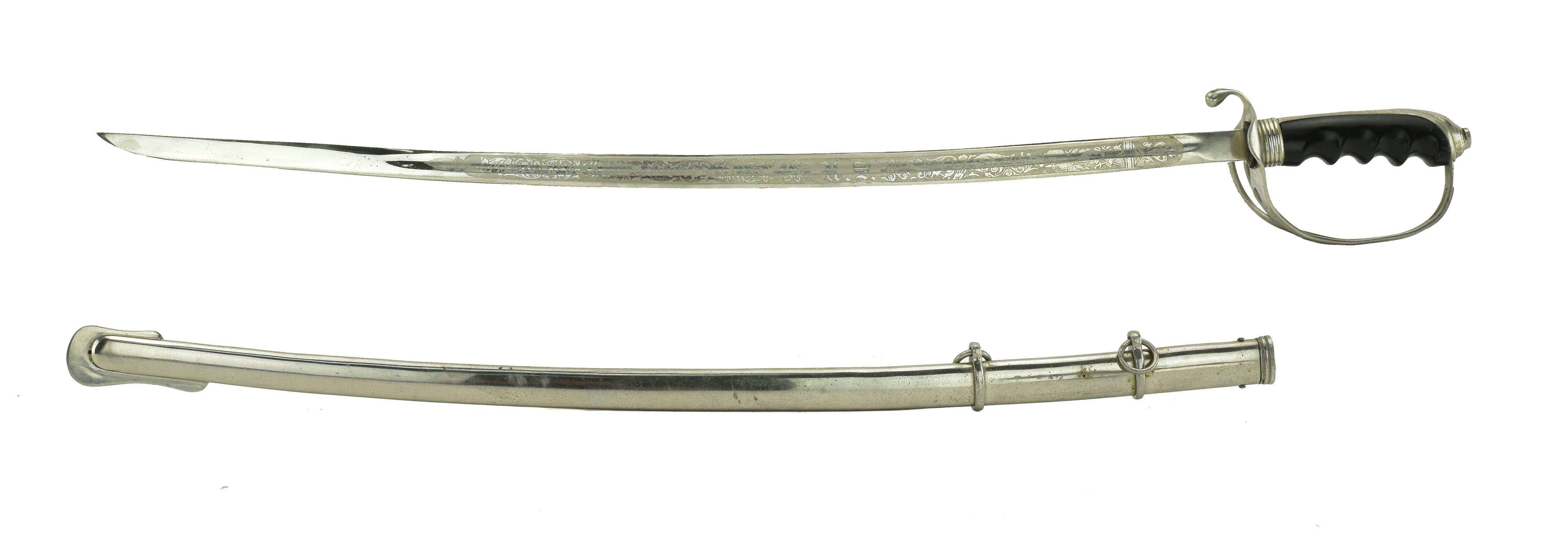 U.S. Model 1902 Army Officers Sword. Blade is approximately 27” with federal eagle, panoply of arms and foliate patterns. Very good overall condition.