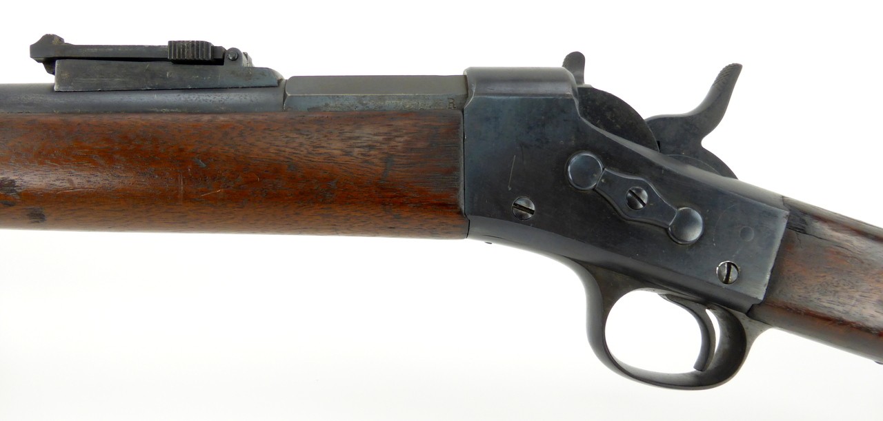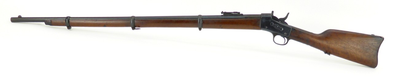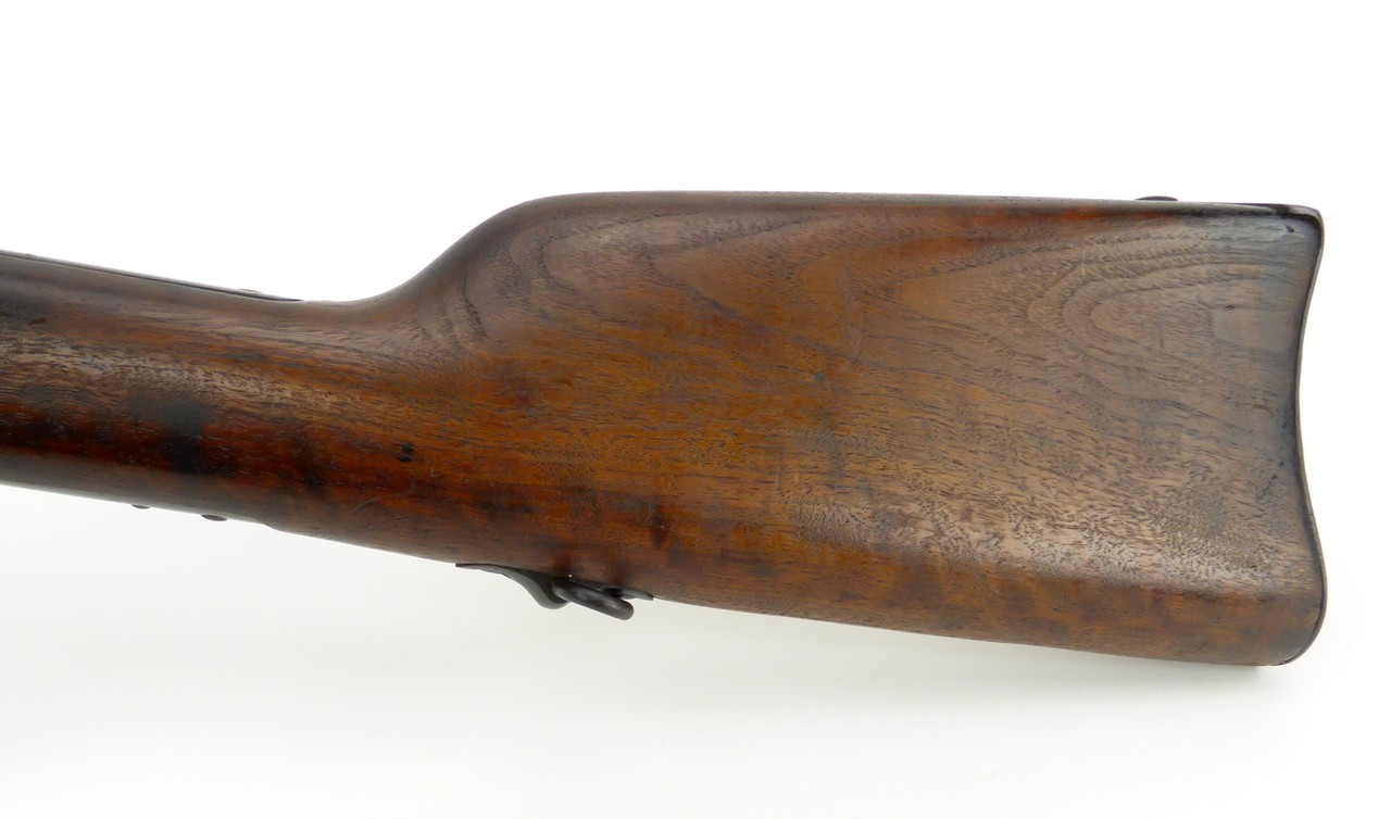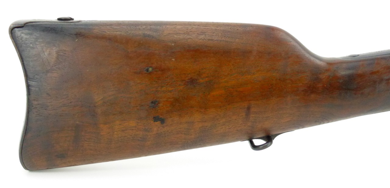Argentine Model 1879 Remington Rolling Block .43 Spanish caliber rifle. About 50,000 were produced from 1879 – 1882. Excellent bore. Arsenal refurbished at some point. Excellent wood. About 95% metal finish. Very good condition overall.