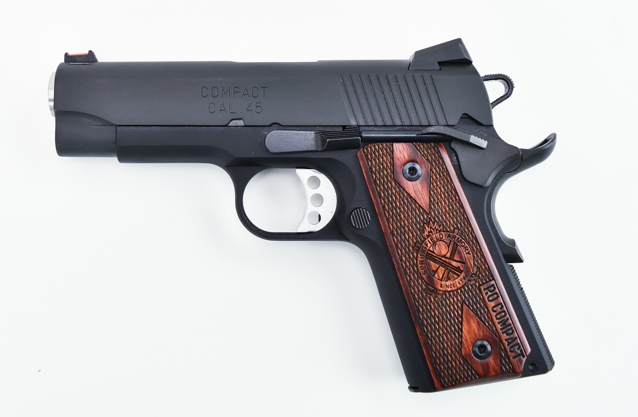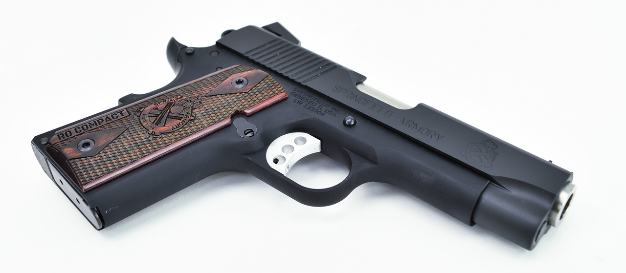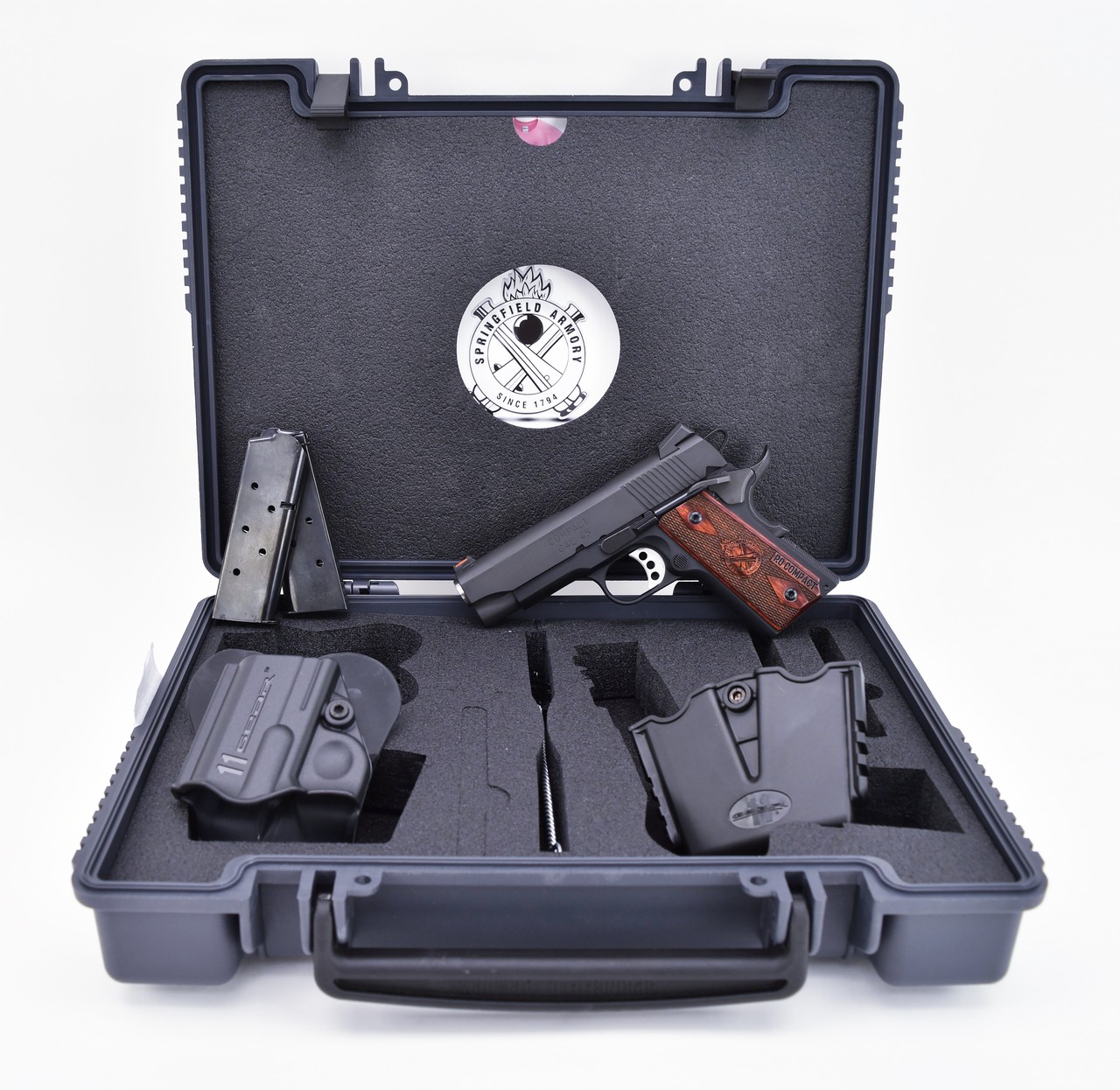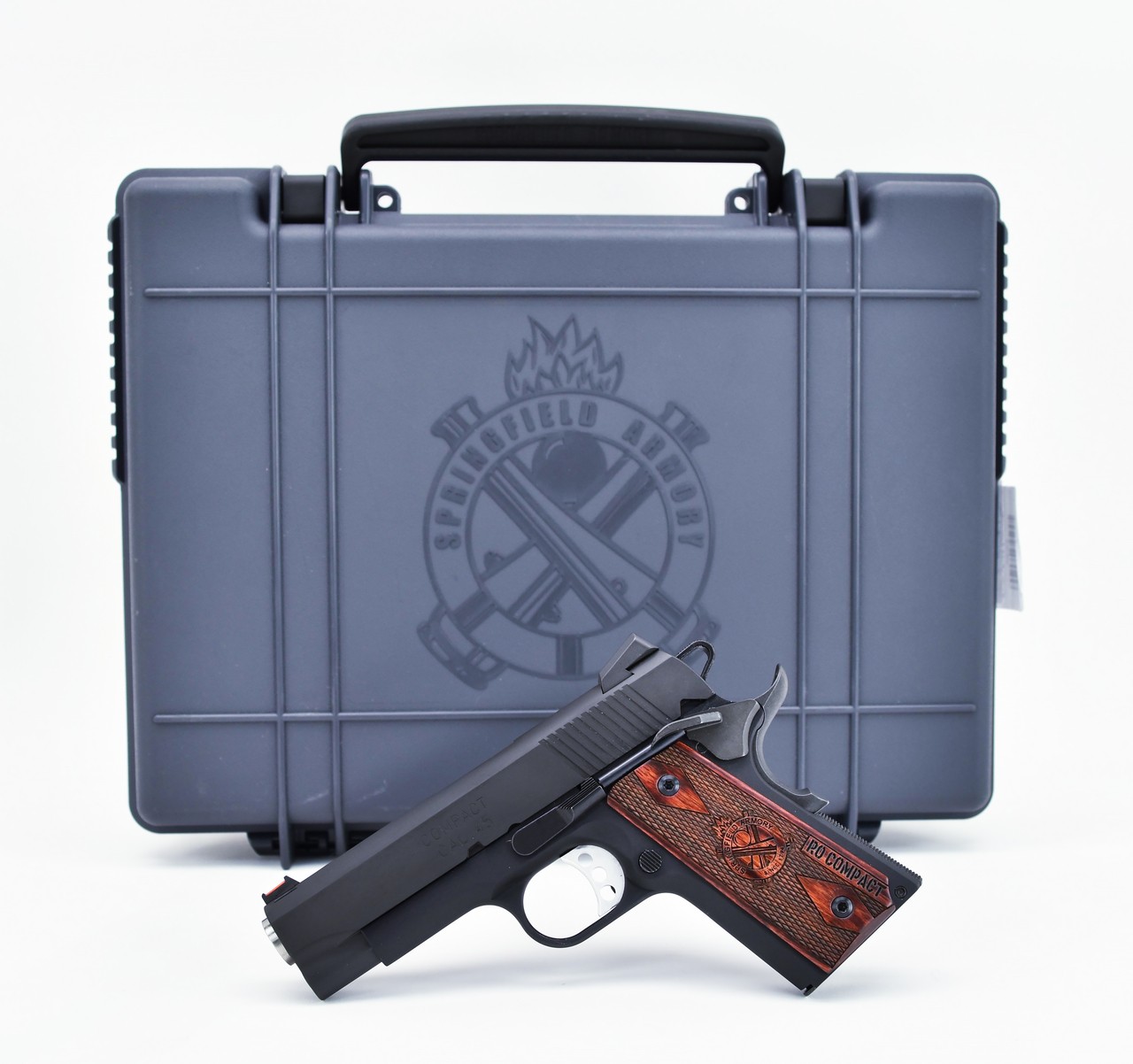 Springfield Armory Compact .45 ACP caliber pistol. Light weight compact range officer model with parrarized finish and gear. New