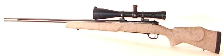Weatherby Mark V 22-250 Remington caliber rifle with Leupold 6.5-20 Vari X-III Long Range scope.