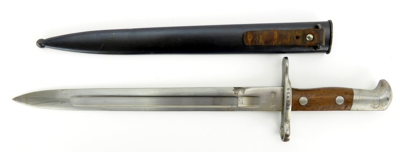 Swiss Model 1889/11 Bayonet with scabbard. Will fit the 1889, 1911 and K31 rifles in very good condition.