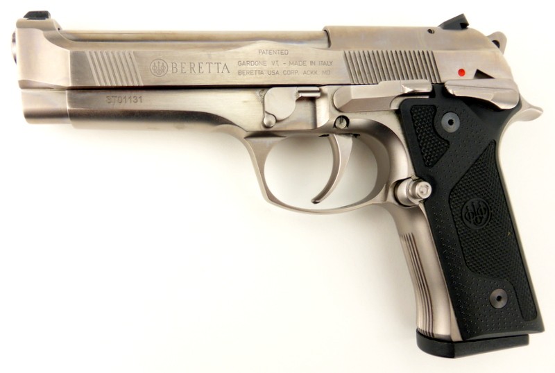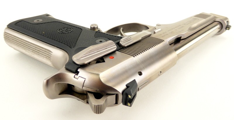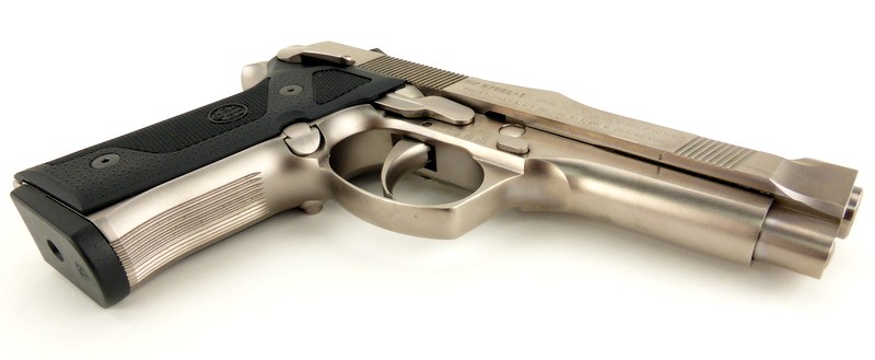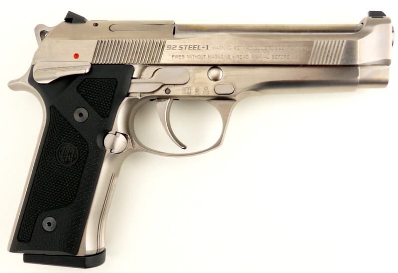 Beretta 92 Steel I 9mm caliber pistol. Rare all stainless steel limited edition model with frame mounted safety and Vertec style grip frame. Excellent condition.