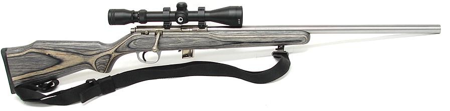 Marlin 917M2S .17 Mach 2 caliber rifle. Heavy barrel stainless target model with laminated stock and 3x9 scope.