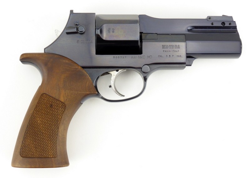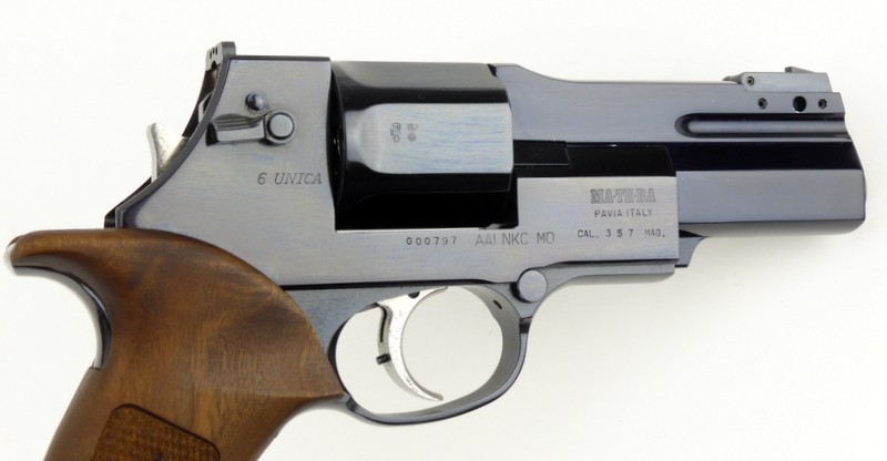 Mateba 6 Unica .357 Magnum caliber revolver. Amazing semi-auto revolver with 4” barrel and blue finish. Excellent condition with box.