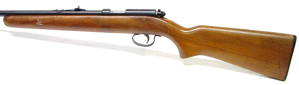 Remington 514 22 S,L,LR caliber rifle. Bolt action plinker. The stock shows wear. The metal is excellent.