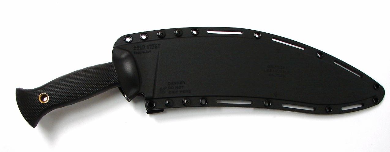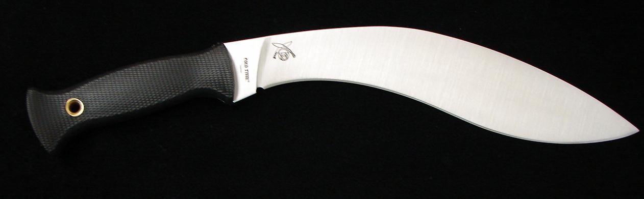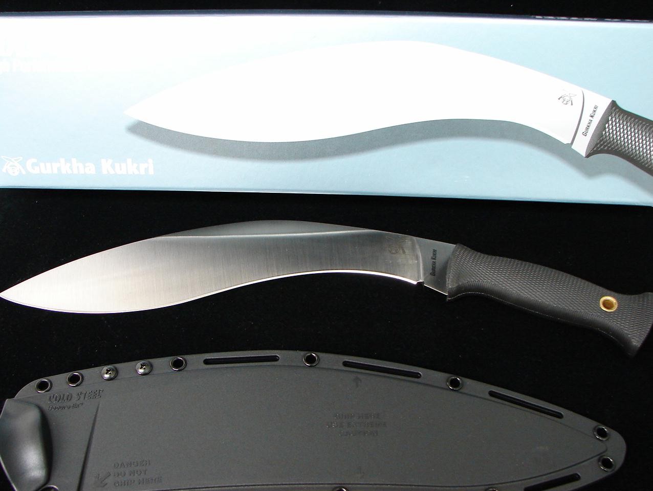 Cold Steel 39LGKT Gurkha Kukri. The Ultimate Chopper from Cold Steel. Extra thick 1/4” spine and beefy grip make this knife one of the toughest customs you can purchase. The SK-5 steel is very durable and will hold an edge through virtually any hard use outdoors task. Watch the Cold Steel videos to witness this knife in action. Cuts through 15 hanging hemp ropes, slices easily though pork ribs, and more! You can dig, chop and cut with this knife. Why waste time with a cheap machete? Go large and wield this full foot long blade, with a 5 1/8” handle, making it a total of 15 1/8” long. New. Price may change without notice.