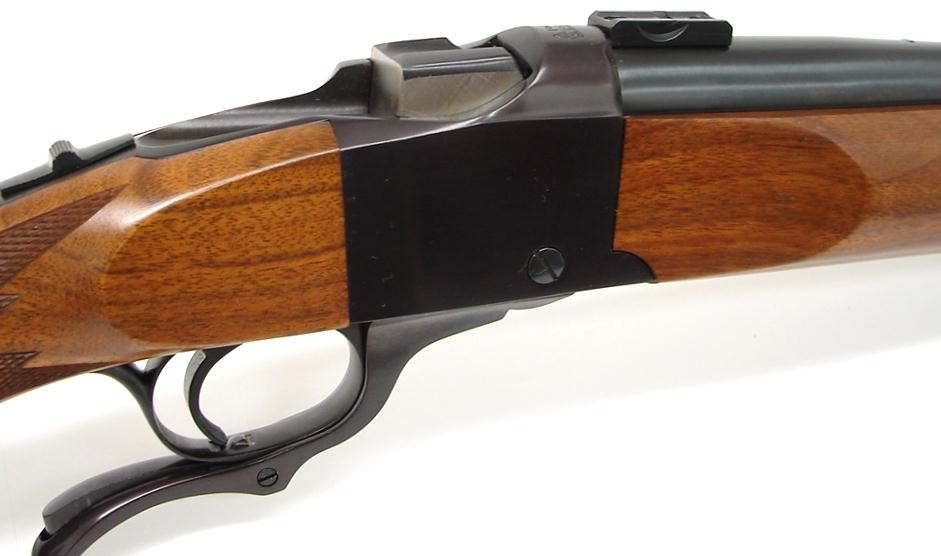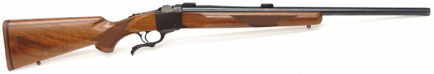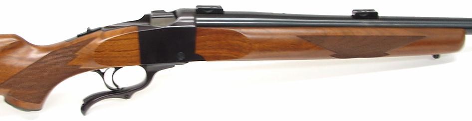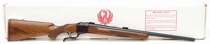 Ruger No 1 .22-250 Rem caliber rifle. Heavy barrel varmint model with beautiful wood. Like new with box and scope rings.