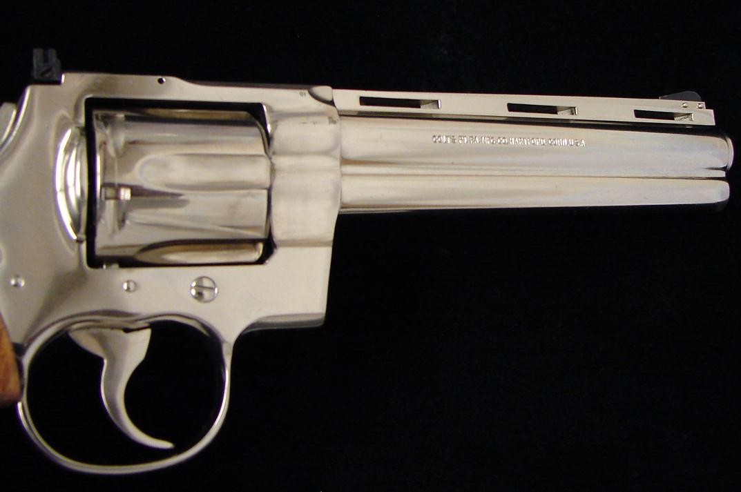 Colt Python .357 Magnum caliber revolver. 6" nickel model in very good condition with light wear.