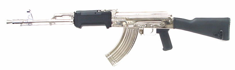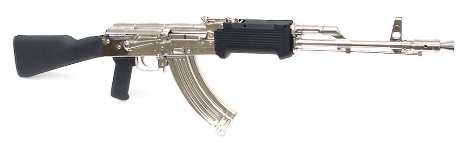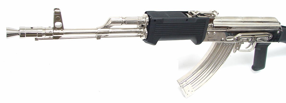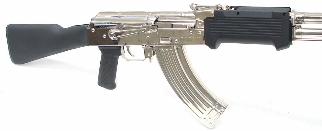 Romanian SAR-1 7.62x39mm caliber rifle. Customized AK with nickel plated finish. Excellent condition.