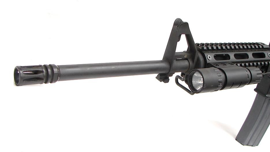 Olympic Arms MFR .223 caliber carbine. 16 A2 carbine with quad rail and flashlight. In excellent condition. (r8524)