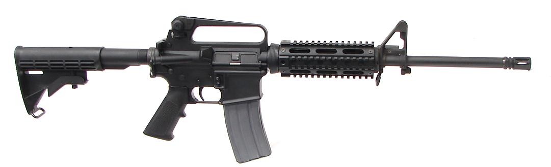 Olympic Arms MFR .223 caliber carbine. 16 A2 carbine with quad rail and flashlight. In excellent condition.