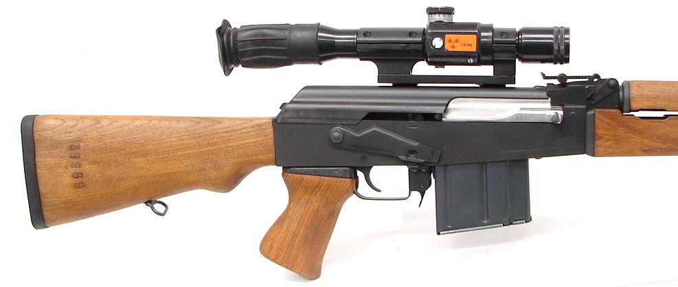 Yugoslavian M76 8mm caliber rifle. Top quality AK sniper rifle in unusual 8mm caliber with scope. New. (r8545)
