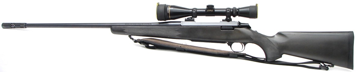 Browning A-Bolt .300 Win Mag caliber rifle. Stalker model with synthetic stock and B.O.S.S. recoil reducer. Has Leup (r9429)