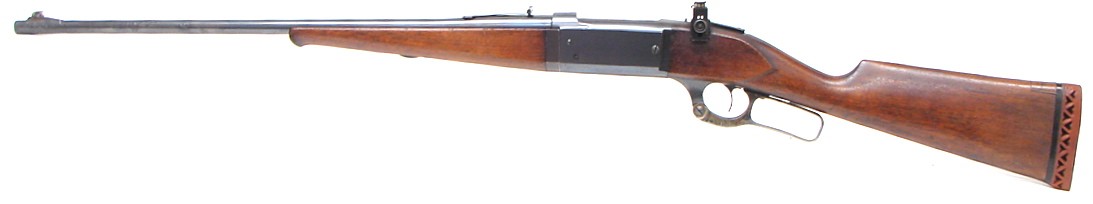 Savage Arms 99 303 Savage caliber rifle. Pre-war take-down model with Lyman peep sight. Barrel has some pitting at the muzzle and recoil pad was added.