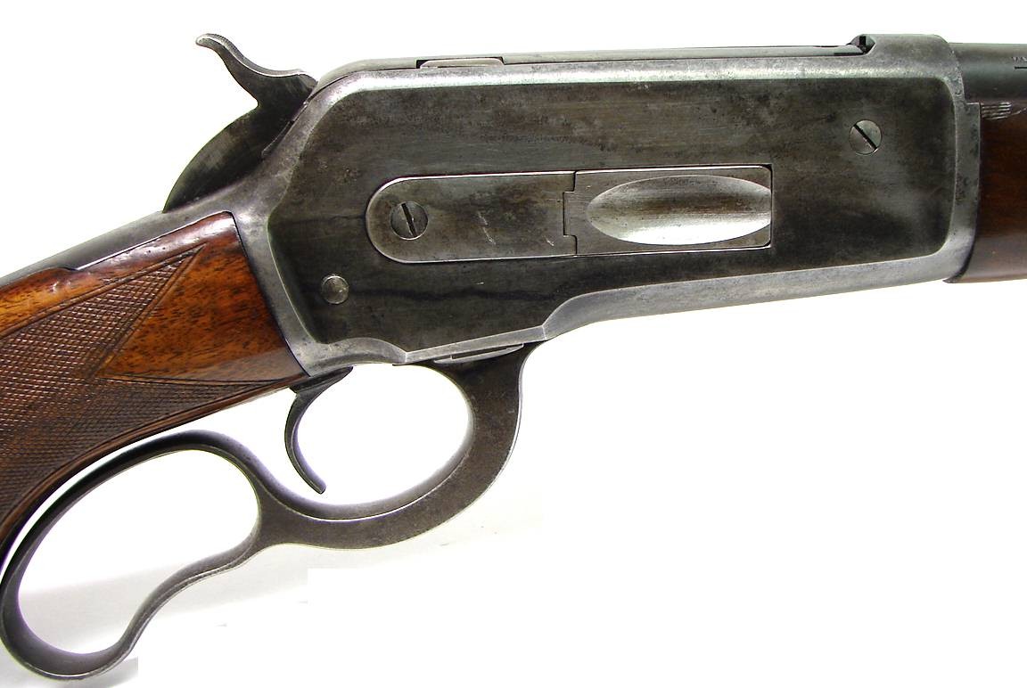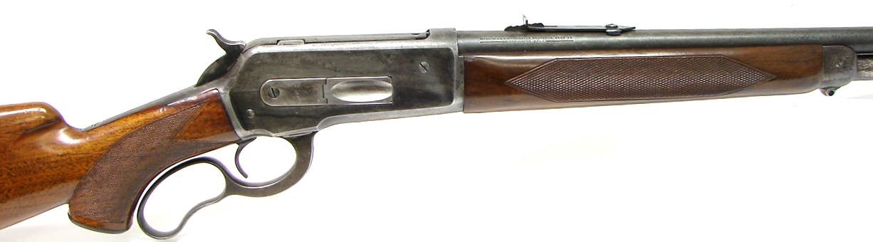 Winchester 71 .348 WCF caliber rifle. Sharp gun with the finish turned to a gray patina. Length of pull measures 13" (W4547)