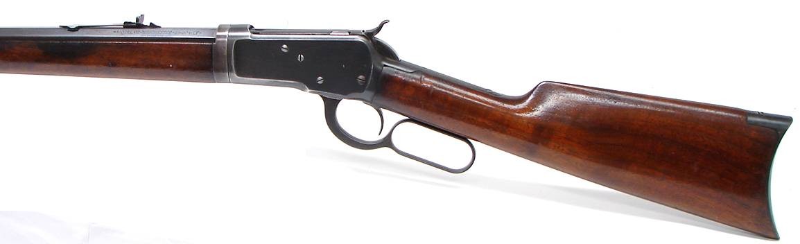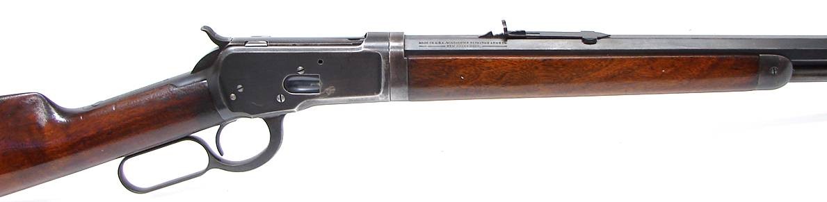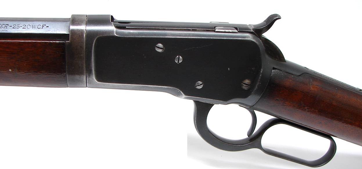 Winchester 1892 .25-20 caliber rifle. Manufactured approximately 1909. Excellent bore. Takedown model. Wood is very good and has a coat of varnish added to it in the past. Metal parts have had some extensive touchup blue. Action works fine.