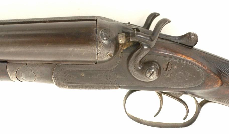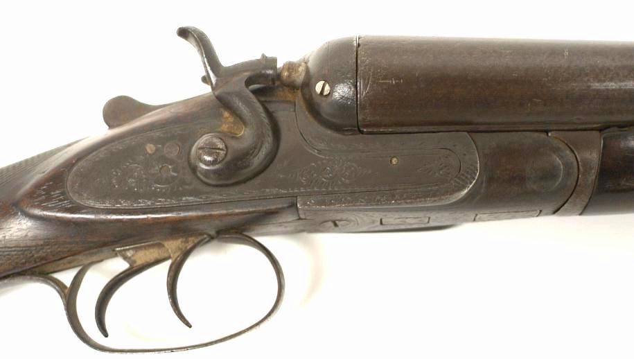 C.G. Bonehill 12 gauge hammer shotgun with Damascus barrels. NOT a shooter. DISPLAY ONLY. (s1084)