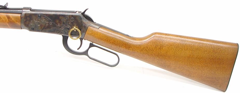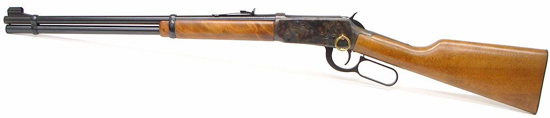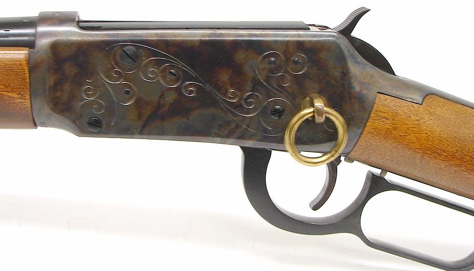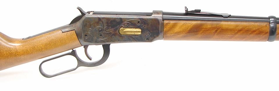 Winchester 94 .30-30 caliber carbine. Post 64 antique carbine model with case hardened engraved receiver and gold saddle ring. In excellent condition.