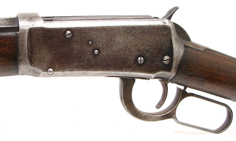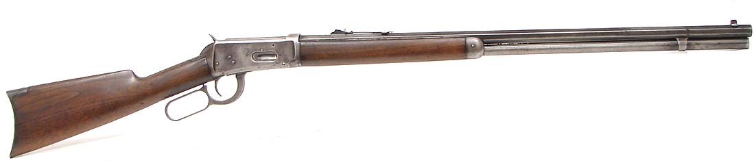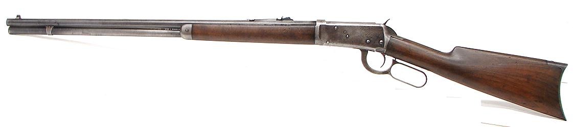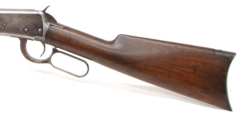 Winchester 1894 .32 WS caliber rifle. Manufactured in about 1899. Has strong rifling and dark in grooves. Full octagon and full magazine. Mechanically fine. Gray patina and excellent markings. This is an attractive old west eye appeal.