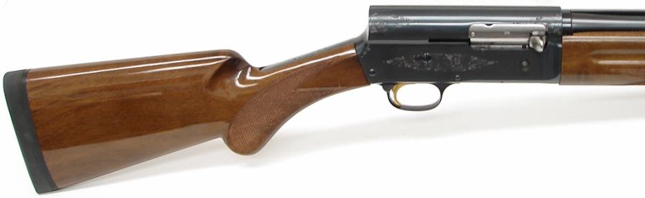 Browning A5 20 gauge shotgun. Belgian made light 20 (Z code) with 27 1/2 modified barrel. The metal is excellent, the wood is modern replacement with a black Pachmayr pad and 14 1/8 length of pull. A good looking and affordable Belgian 20.