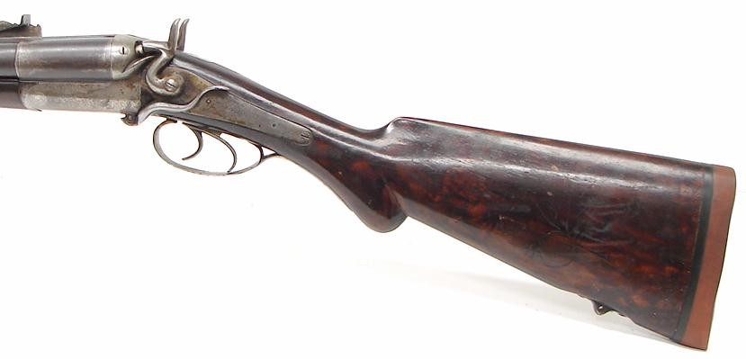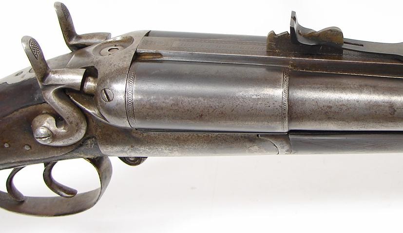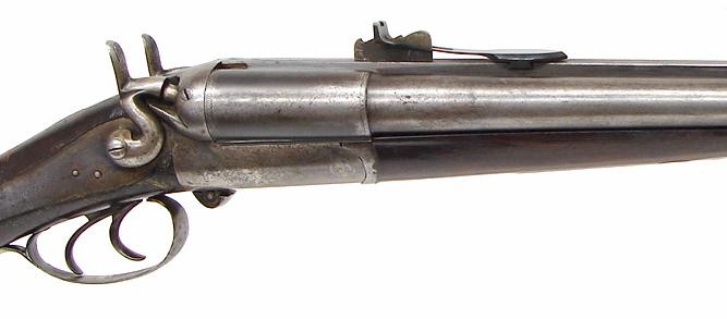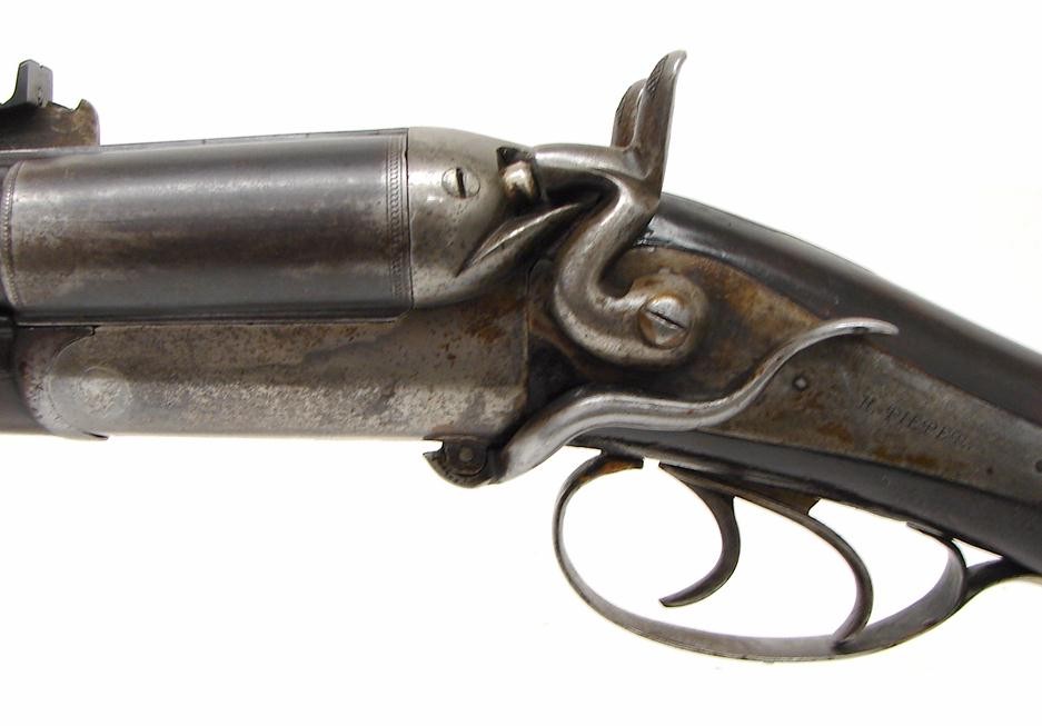 H. Pieper Cape gun with side lever opener. Rifle is .38-55 caliber and shotgun barrel is 12 gauge with 2 ½ ch (s3341)