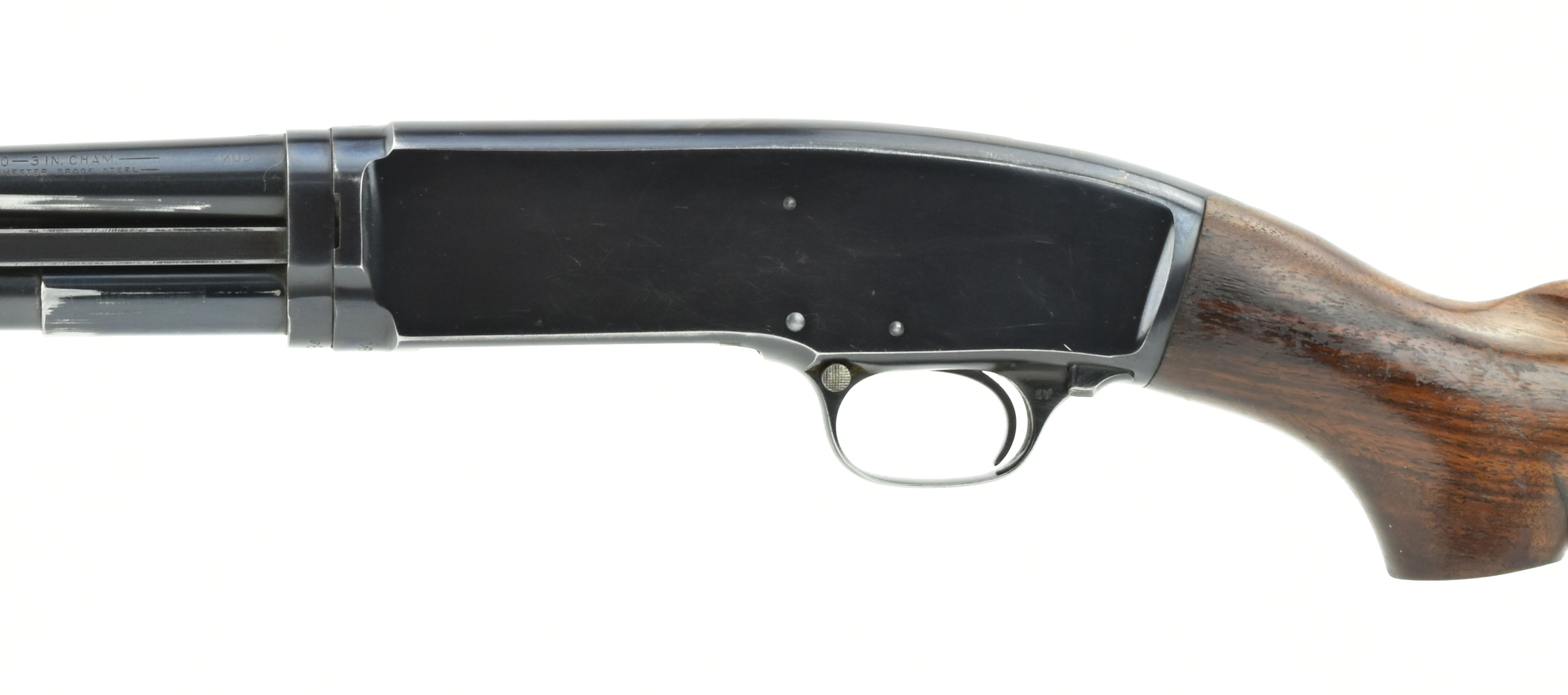 Winchester 42 .410 Gauge shotgun. Field grade pump with 26” modified choke barrel. Made in 1954. The metal has about 96% original blue finish with some edge wear. The wood is very good with light marks and wear. The bore and action are excellent.