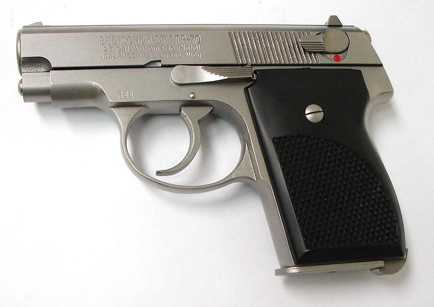 Budischowsky TP-70 .25 ACP caliber pistol. 1970's vintage double action pocket pistol, made by Norton Arm, Excellent condition with box.
