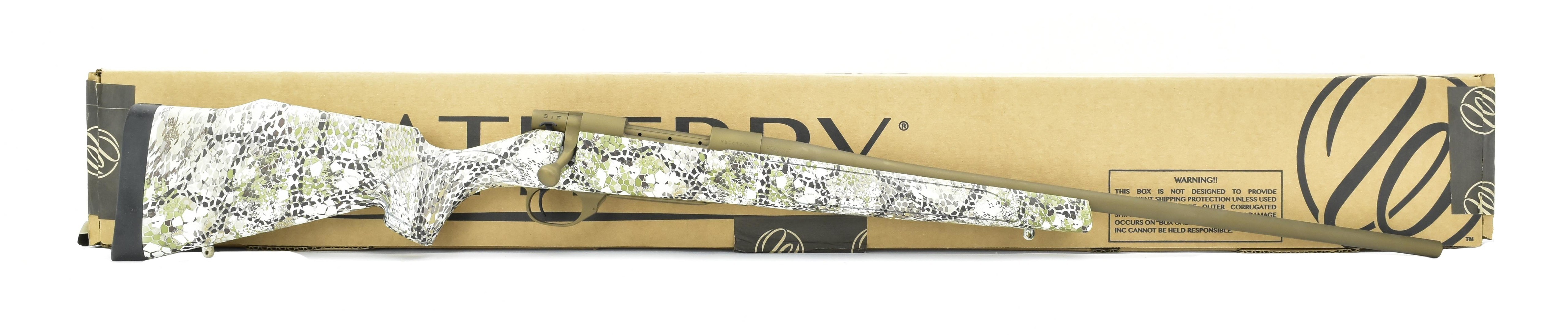 Weatherby Vanguard .308 Win caliber rifle. 24” Barrel, Badlands camo, orange Cerakote and 4+1 capacity. New.