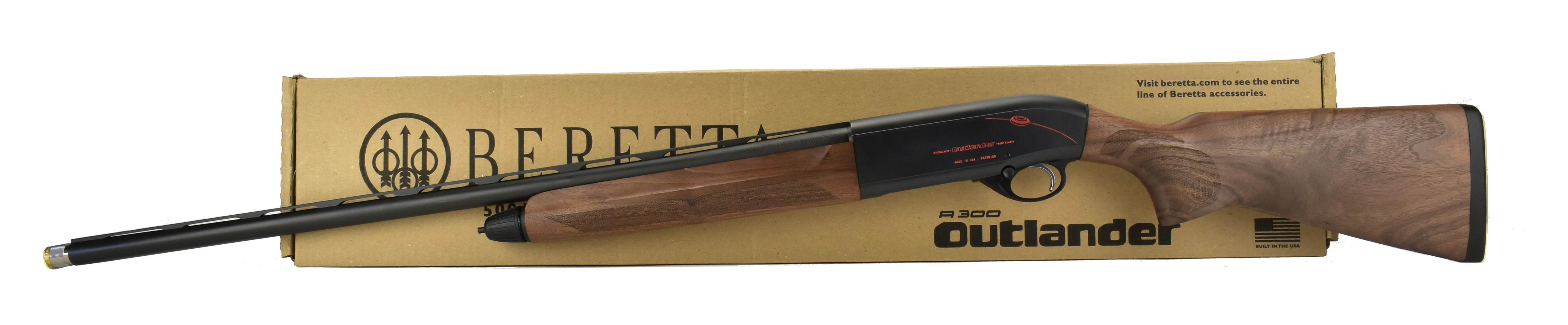 Beretta A300 Outlander Sporting 12 gauge shotgun. Sporting model with 30” barrel, target rib, three extended chokes, wood stock, pad, and 3” magazine. New.