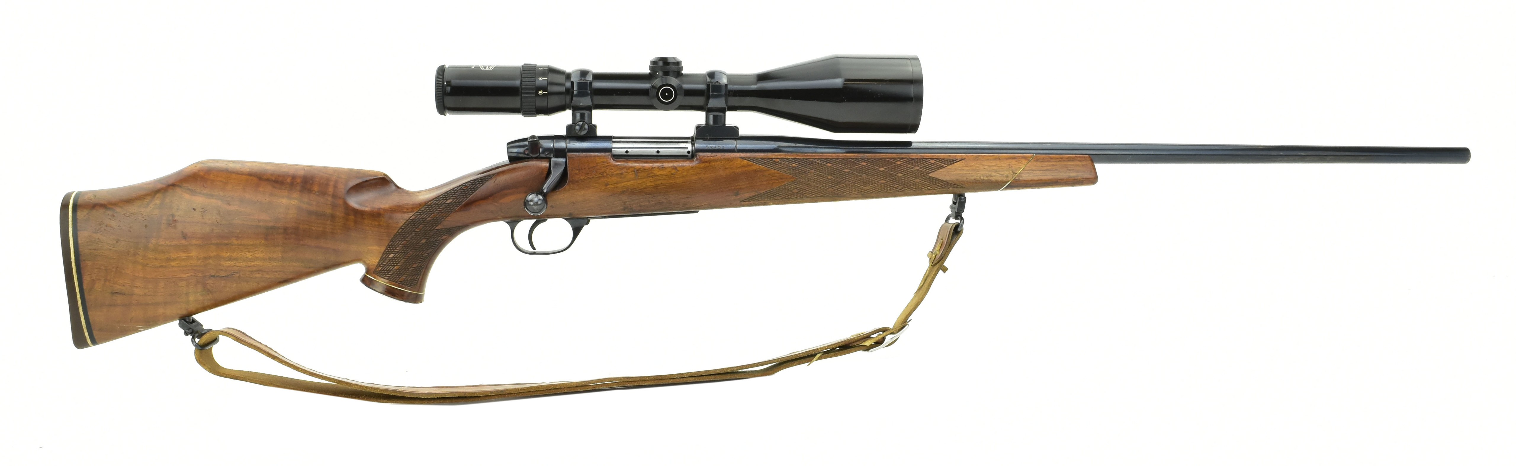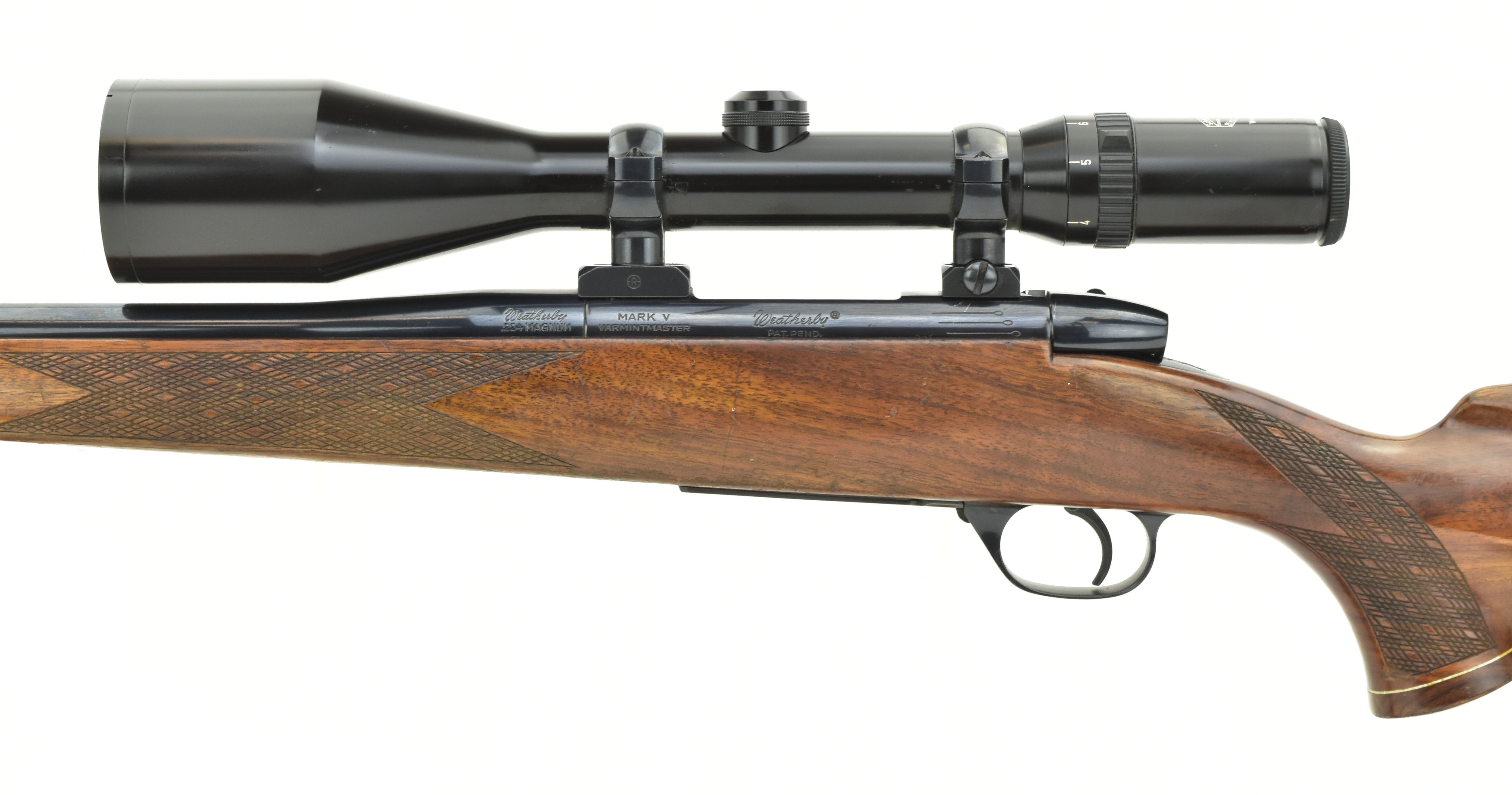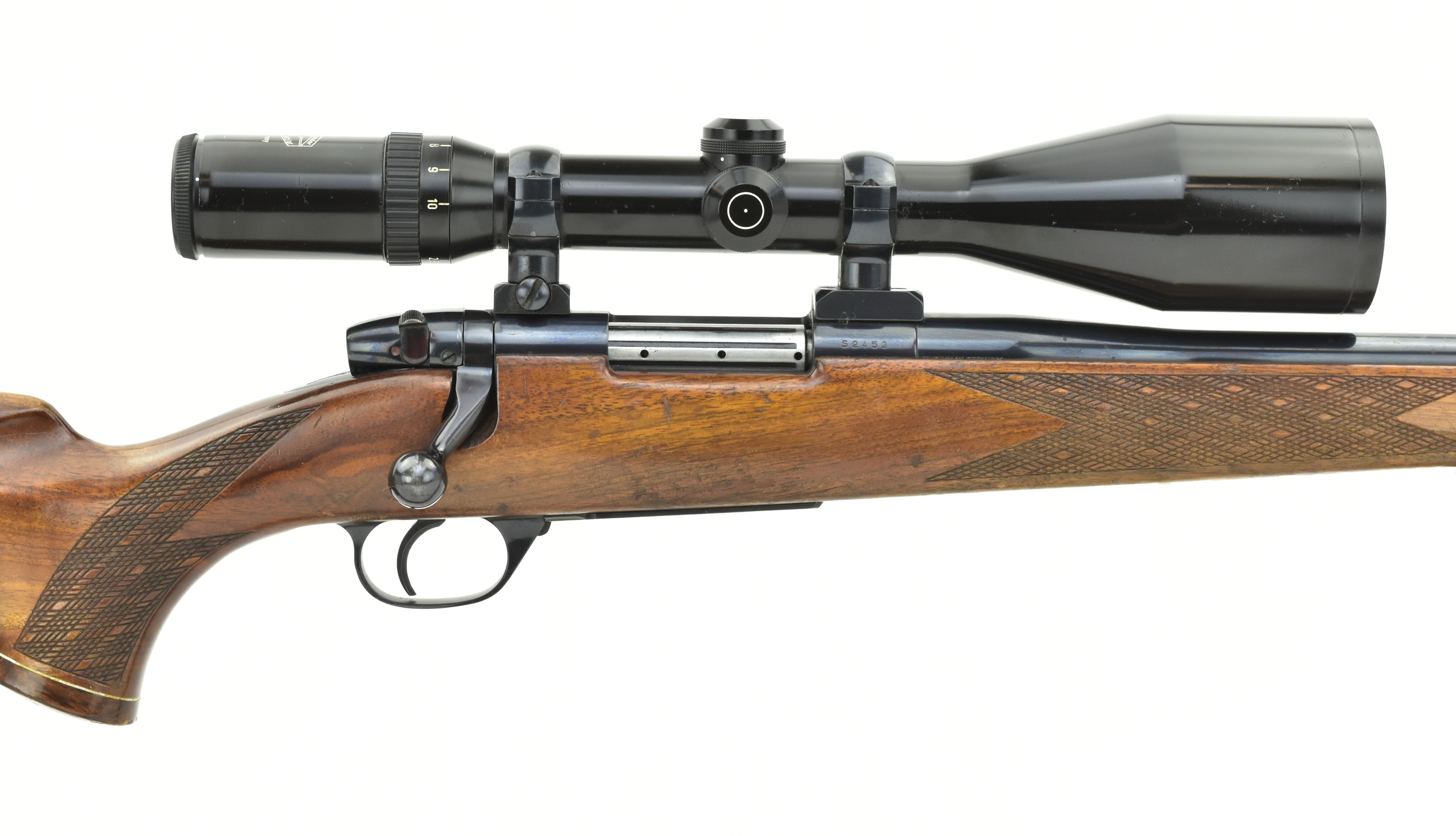 Weatherby Mark V .224 Magnum caliber rifle. West German made Varmint Master with Schmidt & Bender 2.5-10X scope in good condition with some field wear.